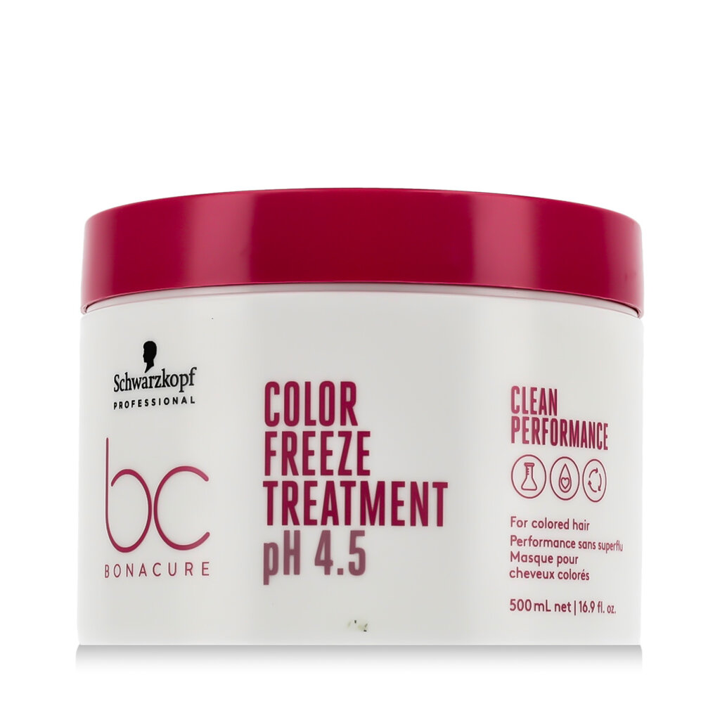 Schwarzkopf Professional BC Bonacure Color Freeze pH 4.5 Treatment est un masque régénérant intensif de 500 ml conçu pour les cheveux colorés ayant besoin d'un soin profond, d'une protection de la couleur et d'un renforcement de la structure. Grâce à la technologie innovante pH 4.5, il fixe les pigments de couleur au plus profond de la fibre capillaire, prolongeant ainsi l'intensité et la brillance de la couleur. Le masque convient à tous les types de cheveux colorés, y compris les cheveux fins et traités chimiquement.